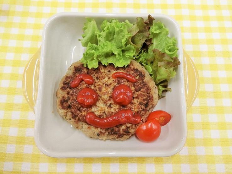 【秋】きのこ入りハンバーグ&ごぼうとひじきの混ぜごはん